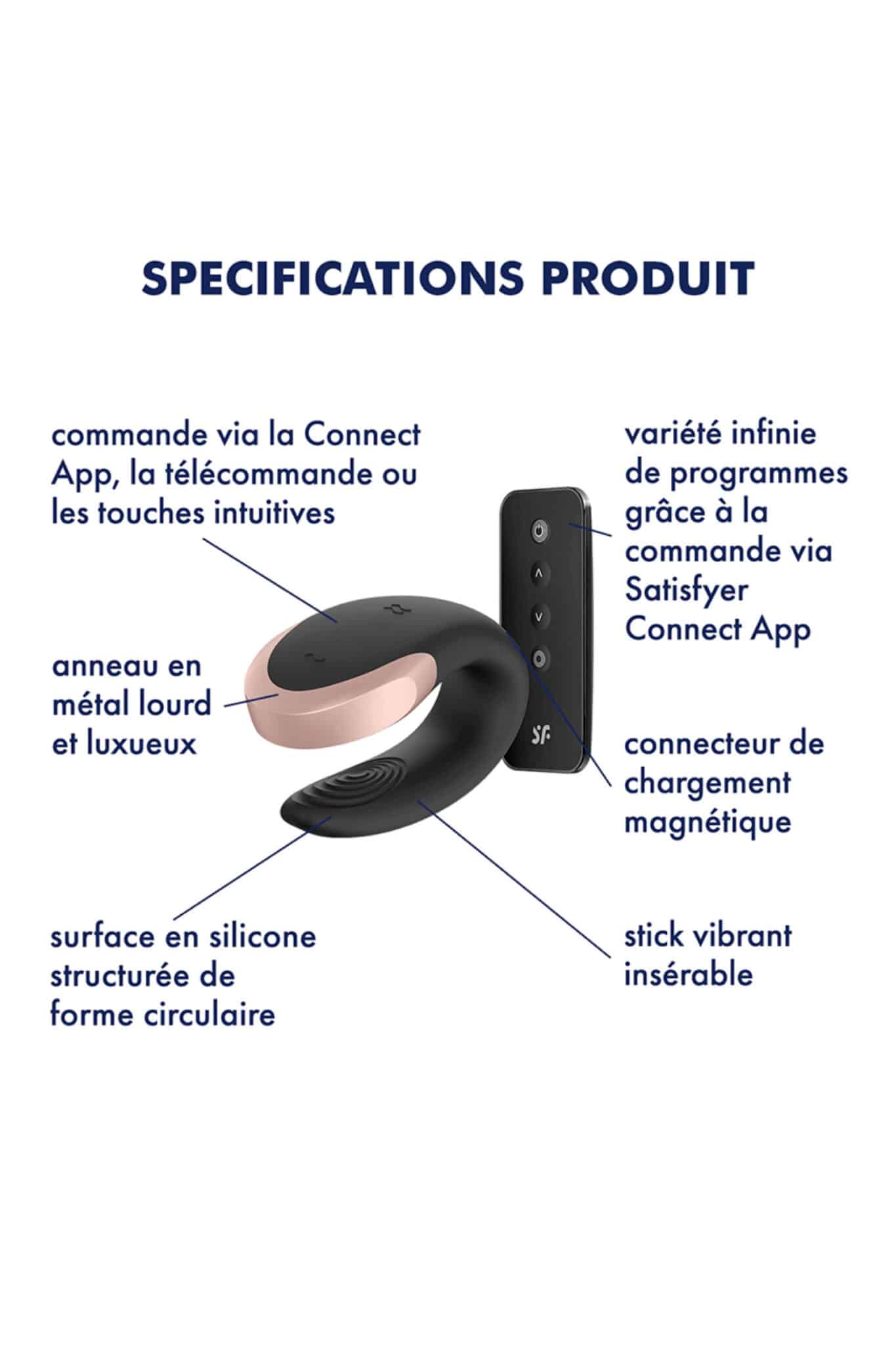 Deux moteurs puissants + 10 modes de vibration et personnalisation via application mobile (“Satisfyer Connect”).