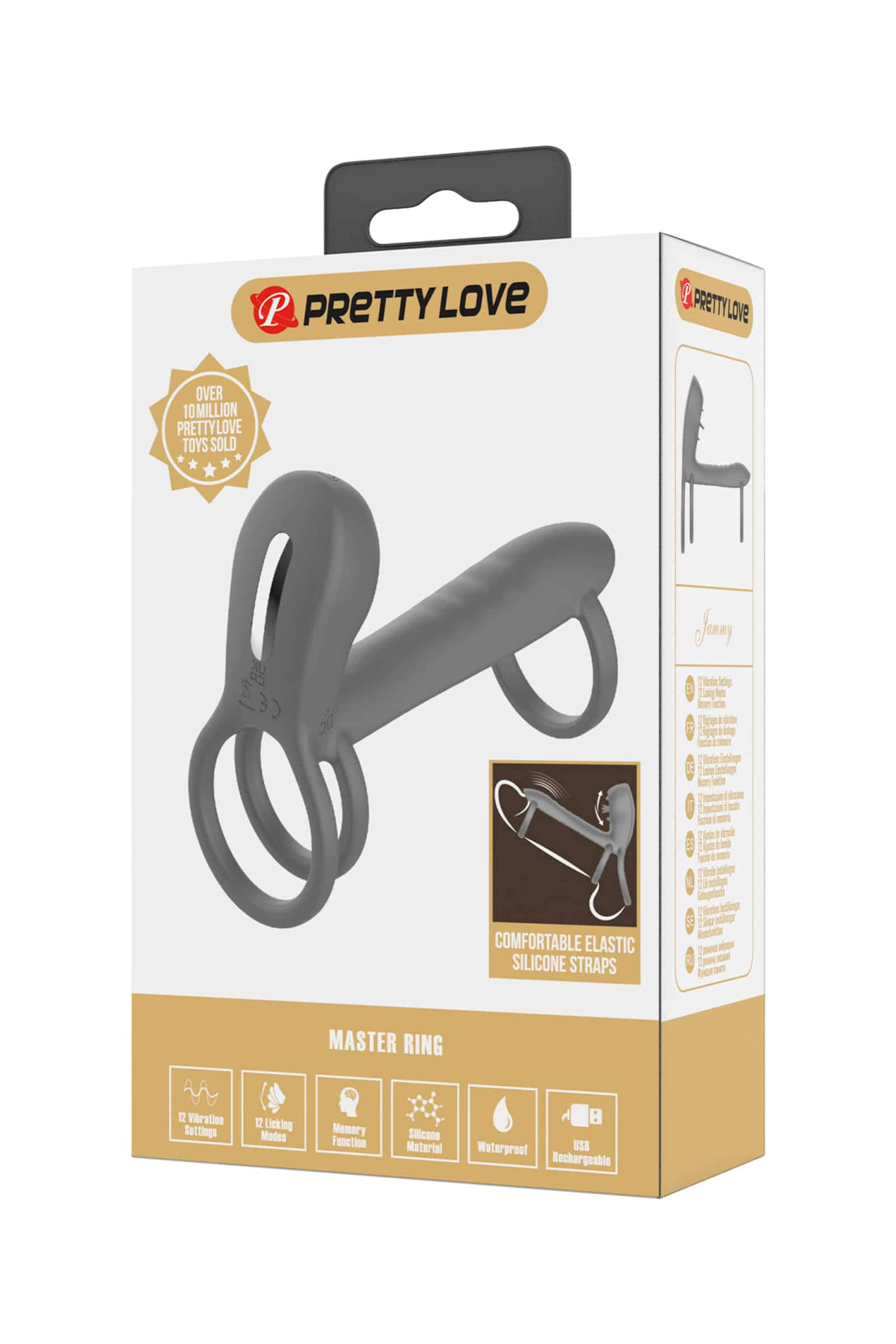Type : gaine / gaine-anneau Pretty Love (« gaine à pénis ») munie de fonctions vibrantes